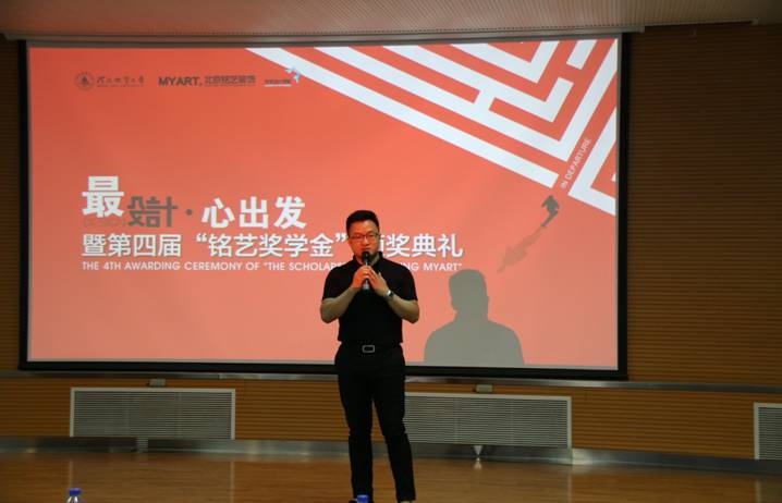铭艺奖学金是由北京铭艺装饰为艺术设计学院设立的专项奖学金,以奖励本科阶段在艺术设计各方面综合素质表现突出的优秀学生。仪式上,北京铭艺装饰总经理赵学忠首先上台致辞,对获奖的同学们表示了衷心的祝贺,并向全体师生传达了该奖学金的重大意义。赵学忠先生不仅是省会别墅装修及高端家庭装饰领域的知名专家,他更是我校优秀毕业生,是我们杰出的校友代表。在行业内获得成绩后,致力于回馈母校,特在艺术设计学院设立此项专项奖学金。