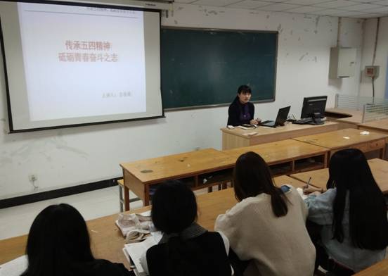 然后,吕佳萌老师以“传承五四精神,砥砺青春奋斗之志”为主题,从“五四运动”与“五四精神”、“五四运动”的伟大历史意义和当代价值和弘扬五四精神,勇做爱国、励志、求真、力行的新时代青年三个方面进行讲解,带领同学们回顾风雷岁月,希望同学们不负时代重托,用实际行动赋予“五四精神”新的时代意义。