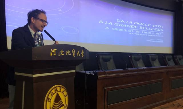 2019年11月6日下午,意大利著名导演、编剧、制片人,意大利那不勒斯美术学院艺术新技术、摄影电视电影专业Luigi Barletta教授应邀在河北地质大学春秋讲堂举行主题为“电影中的意大利”学术讲座。