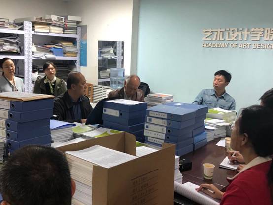 随后,检查专家组组长刘德谦表示,本次检查目的在于以查促教,找问题、抓落实。在此基础上,希望师生们能够认识到教学工作的重要性。紧接着,检查组专家组的各位领导们分别检查了相应的材料,同时召开了学生座谈会。在检查材料过程中,指出存在问题并找出亮点,在座谈会当中,学生们畅所欲言,对于线上教学形式和老师授课教学质量做出了解读,并从自身抒发了心得。经过一个多小时的检查,对学期教学工作做出了全面系统的总结,指出艺术学院的设计作品、流程设置等亮点之处,同时,针对教学过程当中存在的一些问题提出了意见和建议。