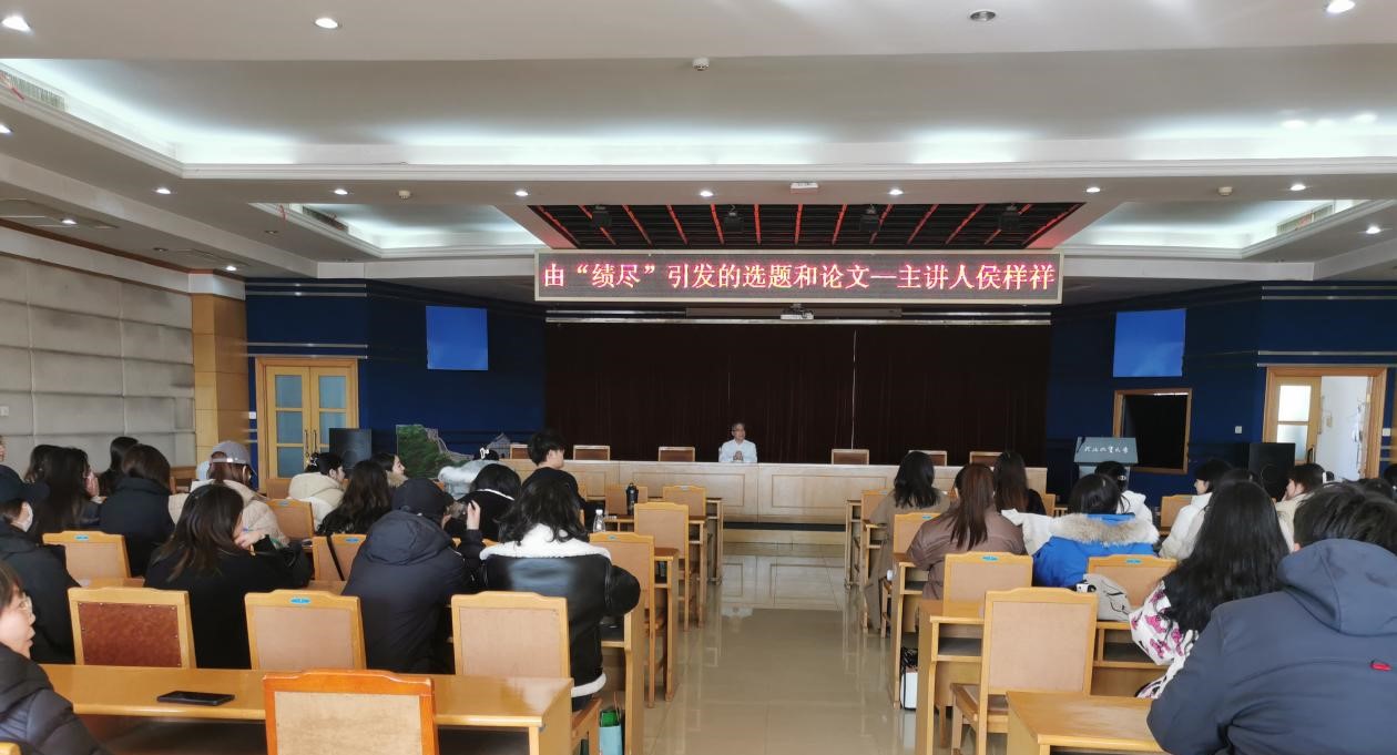 在“九鼎讲座”学术基金的支持下,2023年12月1日下午,河北地质大学艺术学院邀请中国艺术研究院教授、博士生导师侯样祥,在教一九楼学术告厅举办了一场题为《由“绩尽”引发的选题和论文》的研究生专题报告会。活动由艺术学院苏道玉老师主持,设计学院领导、老师以及全部硕士研究生共同聆听此次学术报告。