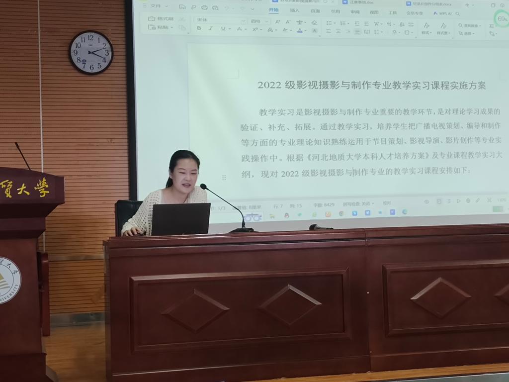 近日,影视摄影与制作教研室副主任陈诺老师、张晔老师针对摄制专业大二和大三学生展开的教学实习和专业实习方案说明会在北校区图书馆401学术报告厅成功举行,同时邀请周祥东老师作专业实习中与石家庄市文联合作的“石家庄民间非遗系列微纪录片”活动说明,此次说明会旨在让大二大三学生深入了解即将到来的实训课程安排,为他们的实训之旅做好充分准备。此次说明会的举行,犹如一盏明灯,照亮了学生们即将踏上的专业实训征程。