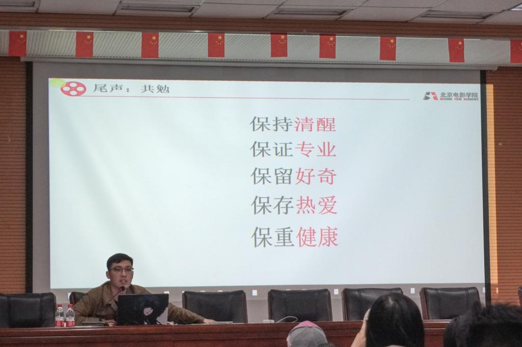 在讲座的最后徐梁老师告诉同学们想要掌握全媒体时代网络视听创作新理念,应该深入社会现实。建议同学们在创作中应该牢牢把握住“专业、审美、真实、价值观”四个方面,完成新理念的更新。作为创作者在具体拍摄过程中,应该尊重被拍摄者,牢牢把握住拍摄的价值观和边界感。尾声徐老师与现场同学们共勉,特别指出在这时代我们更应该应保持清醒、保证专业、保留好奇、保存热爱、保重健康。只有如此才能创作出吸引大众的网络视听作品。会后在师柔剑老师的主持下现场学生们与徐梁老师积极互动、氛围浓厚,场面热烈。