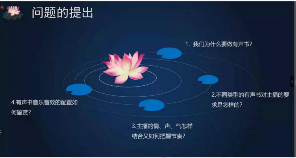 本次学术讲座,李亚虹老师分别对我们为什么要做有声书、不同类型的有声书对主播的要求是怎样的、主播的情声气怎样结合又如何把握节奏、有声书音乐音效的配置如何鉴赏四个问题进行了详尽的阐述和分析。李亚虹老师从有声书的产业链、网络音频的媒介环境与网络音频的产业发展开始介绍,使同学开始了解有声书的市场;接着从播音创作的六大规律——思维反应律、词语感受律、对比推进律、情声和谐律、呼吸自如律、自我调检律,着重分析了有声书的核心竞争力;最后提醒同学们在创作有声书作品的过程中音乐以及音效也是十分重要的。讲座过程中,李亚虹老师选用大量的有声书作品,使同学们对有声书创作有了更加深刻的认识。