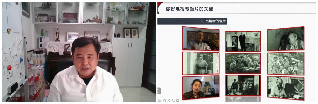 2022年5月12日14点,艺术学院特邀中央电视台著名记者、编导、制片人董鑫老师,在腾讯会议平台为学院师生作了题为《电视专题片的选题策划与创作技巧》的学术报告,广播电视编导教研室师柔剑主任主持了报告会。学院领导、专任教师,广播电视编导、影视摄影与制作专业全体学生和播音与主持艺术专业部分学生,600余人聆听了报告。