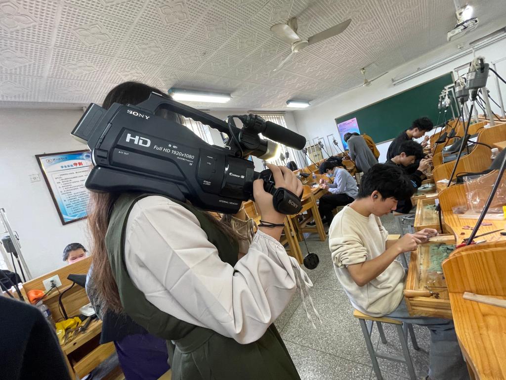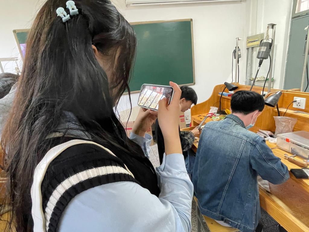 下午,学生们来到了河北地质大学的宝石学院的专业课课堂,近距离观摩和拍摄珠宝的制作与镶嵌的过程,以期打破传统珠宝类视频固有的影像风格,寻找更为有趣奇妙的创作视角。