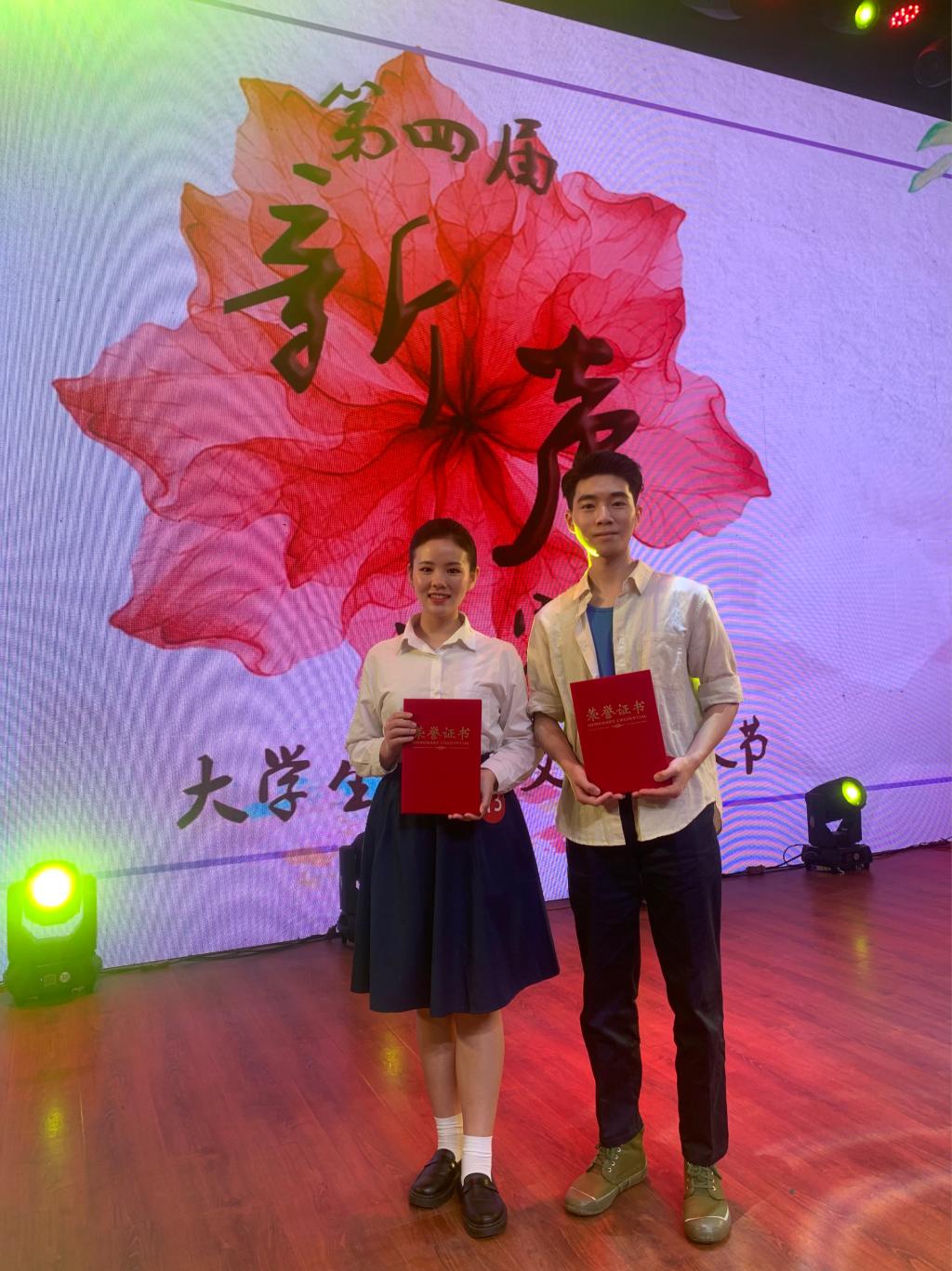 比赛得到省内外高校的积极响应,共有全国70所高校的349部优秀作品,经过严格公正的评审之后,最终评选出14部作品入围决赛。经过决赛的激烈角逐、评委组审慎评议。我院由李静雯、翁继青原创并朗诵,由胡黎娜老师、李昀窈老师指导的稿件《有爱不觉春天远》,在众多参赛作品中脱颖而出,成为此次第四届“新声”大学生原创作品朗诵比赛一等奖,由胡黎娜、李昀窈老师指导。