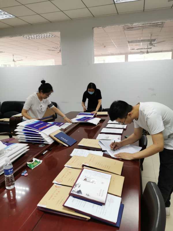 学院书记宋朝霞同辅导员一起整理邮寄毕业相关材料