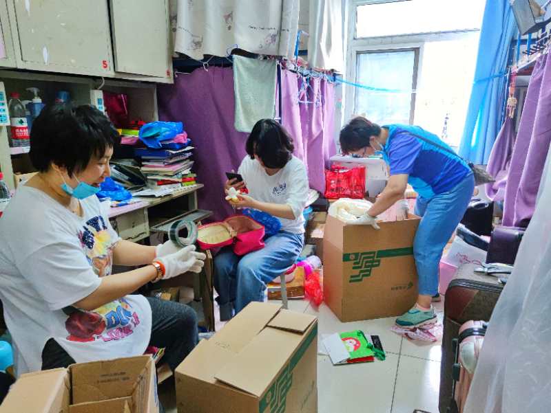 为毕业生打包行李的工作非常琐碎和繁重,首先辅导员通过多种方式摸排毕业生情况,统计寄送要求、邮寄地址等具体信息,之后参与打包的教师与学生逐一建立联系,以全程视频直播连线的方式沟通交流,按照每个同学的要求,将所需物品进行分类收纳整理并做好标记,最终保障行李顺利邮寄到学生手中。