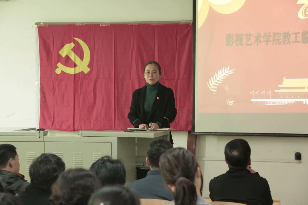 2019年10月17日下午,影视艺术学院在图书馆302教室召开支部扩大会议,参会人员包括教职工党员、学生党员及全体入党积极分子,会议议程包括:教工临时党支部换届选举、“不忘初心、牢记使命”主题教育之“走近西柏陂”。会议由党支部书记宋朝霞主持。