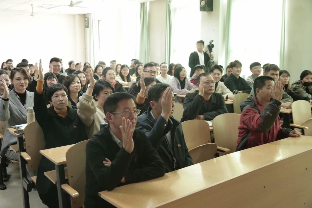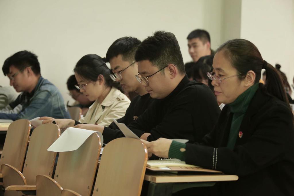 教工临时党支部成立于2016年9月,三年来对学院所有流动党员进行规范管理和经常性学习教育,设有健全的支部委员会。会议第一项,按照《中国共产党章程》及《中国共产党基层组织选举工作条例》的规定和有关程序,对任期期满的支部委员会进行换届选举。全体与会教工党员经举手表决,选举出新一届教工临时党支部委员会成员:党支部书记:宋朝霞,宣传委员:马小庆,组织委员:陈诺。