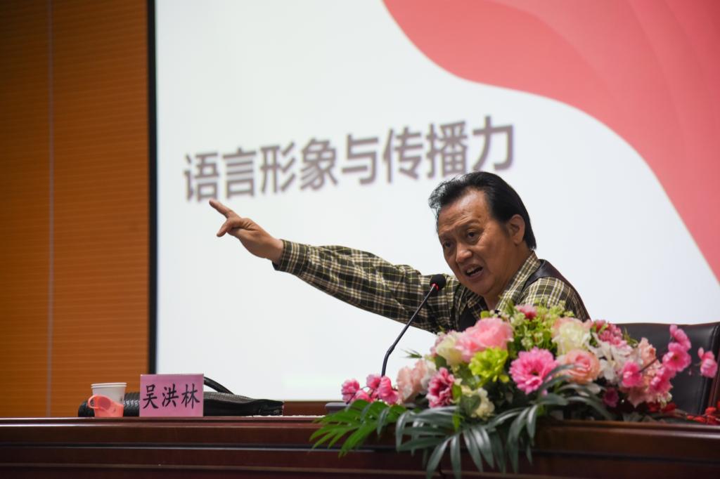 5月16日,原上海戏剧学院电视艺术学院副院长、教授、董卿导师吴洪林教授来我院做题为《语言形象与传播力》的专题讲座,学院陈烈院长、播音与主持艺术专业教研室教师及播音 与主持艺术专业的2016级、2017级学生聆听了讲座。