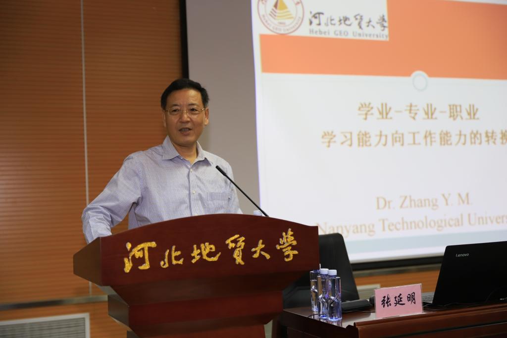 9月10日上午,新加坡南洋理工大学张延明教授在北校区图书馆401报告厅为我院学生进行了“学业-专业-职业 学习能力向工作能力的转换”为主题的专题讲座。学院陈烈院长、宋朝霞书记、无课教师以及学院16、18级全体学生700余人聆听了讲座。