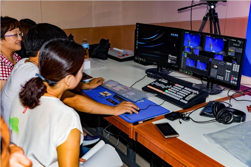 6月25日,影视艺术学院教师在实验中心的虚拟演播室及多功能室进行了关于虚拟演播室系统和教学一体机的操作培训。