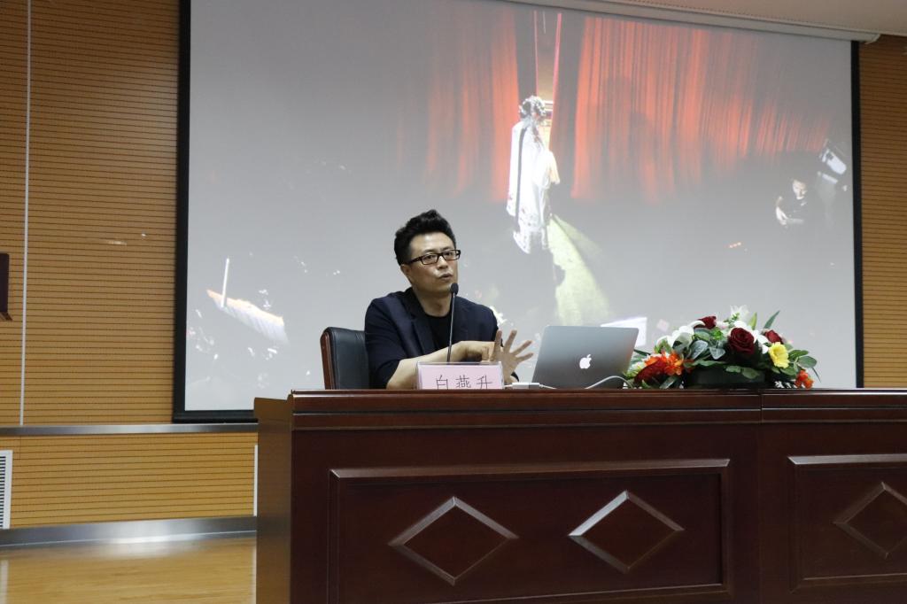 2018年5月10日,知名媒体人、“金话筒”奖得主、前央视著名主持人白燕升先生应邀做客我校“仰山慕水”讲坛,在北校区学术报告厅为我校师生作了《漫谈艺术美学与人性光明》的专题讲座。学校王凤鸣校长、两办尉西杰主任、影视艺术学院陈烈院长、宋朝霞书记与学院数百位师生聆听了讲座。
