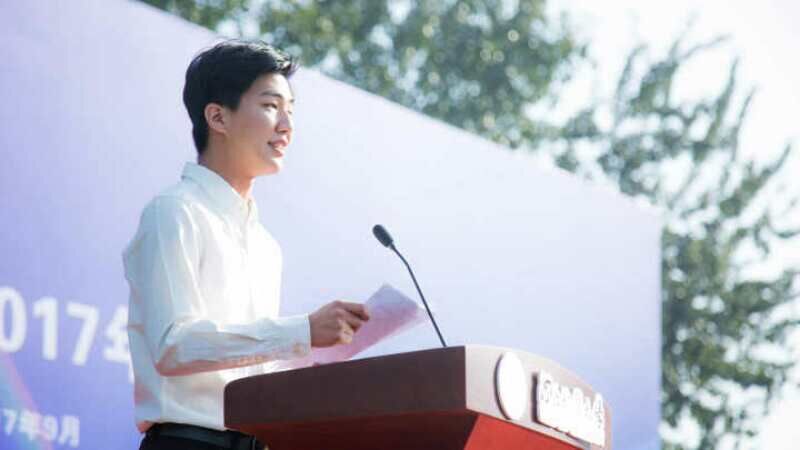 影视艺术学院播音二班张博伦代表广大新生上台发言。