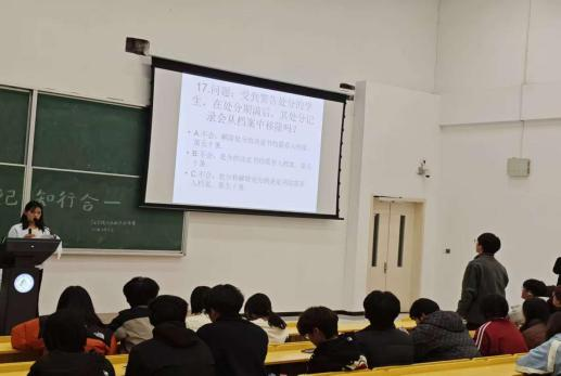 为深入学习贯彻学校违纪规定,增强学生法治意识和纪律观念,2025年11月10日,艺术学院科学技术协会在教一111教室成功举办“学规守纪·知行合一”纪法知识团体赛。本次活动以赛促学、以学促用,将严肃的学校纪法知识与激烈的竞赛形式巧妙结合,为同学们带来了一场别开生面的纪法教育盛宴。