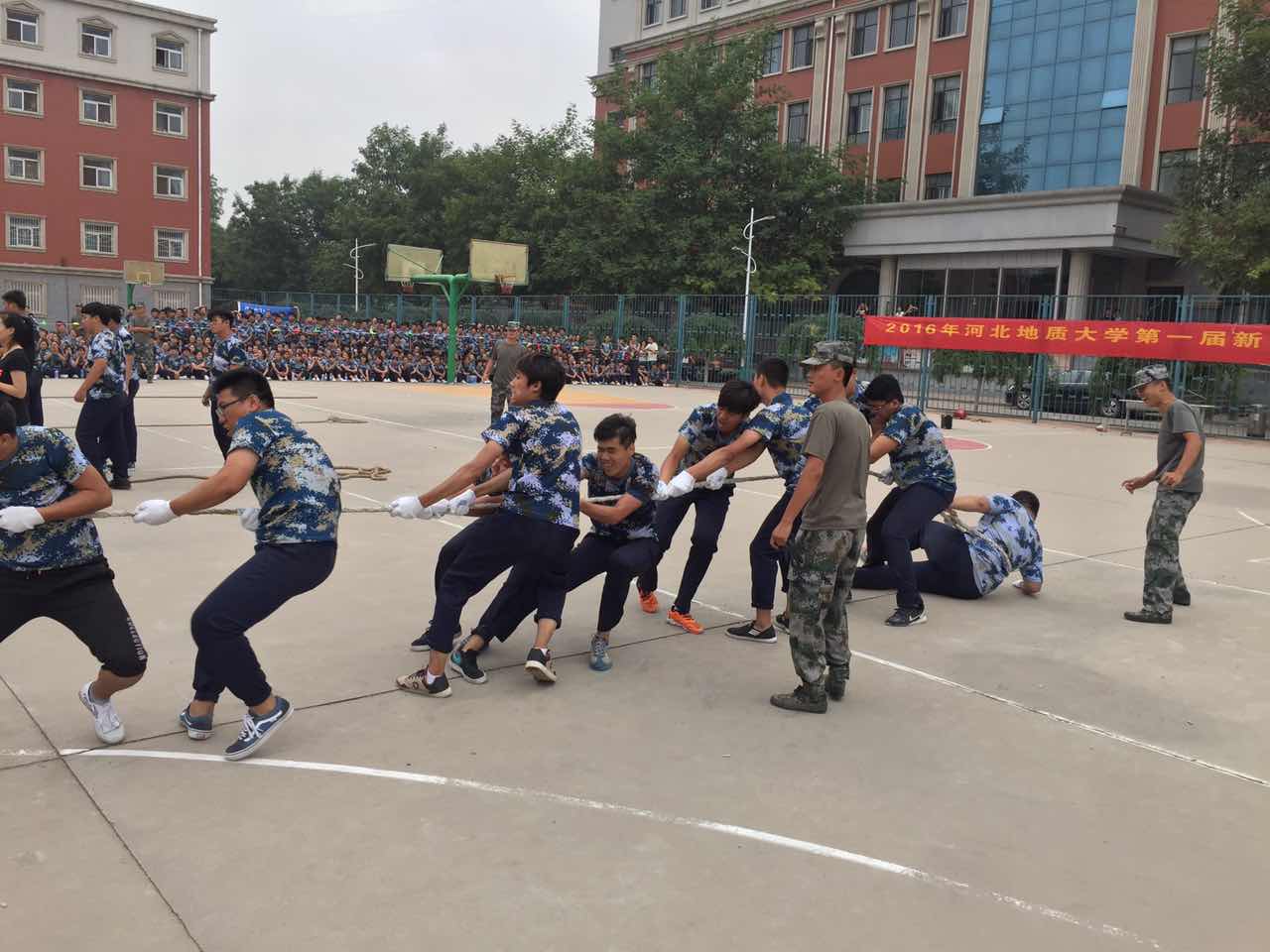 青春挥洒汗水,拼搏筑梦明天。河北地质大学2016级新生以青春的活力注入新环境,迎接新的挑战。为了丰富军训生活,增强各学院内部的凝聚力,使新生们迅速融入集体,2016年9月5日到6日,由校学生会主办的河北地质大学第一届新生拔河比赛分别在本部和北校区热烈开展。全校共15个学院参加了此次比赛。