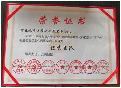 为了引导学生积极践行社会主义核心价值观,解决青年学生对现实社会中诸多问题和矛盾的认识,2018年7月,影视艺术学院心牵故里小分队到石家庄艺鸣画室对艺术培训行业风险及对策进行了研究,并在2018年河北省大中专学生志愿者暑期文化科技卫生“三下乡”社会实践活动中表现突出,被评为省级“优秀团队”。
